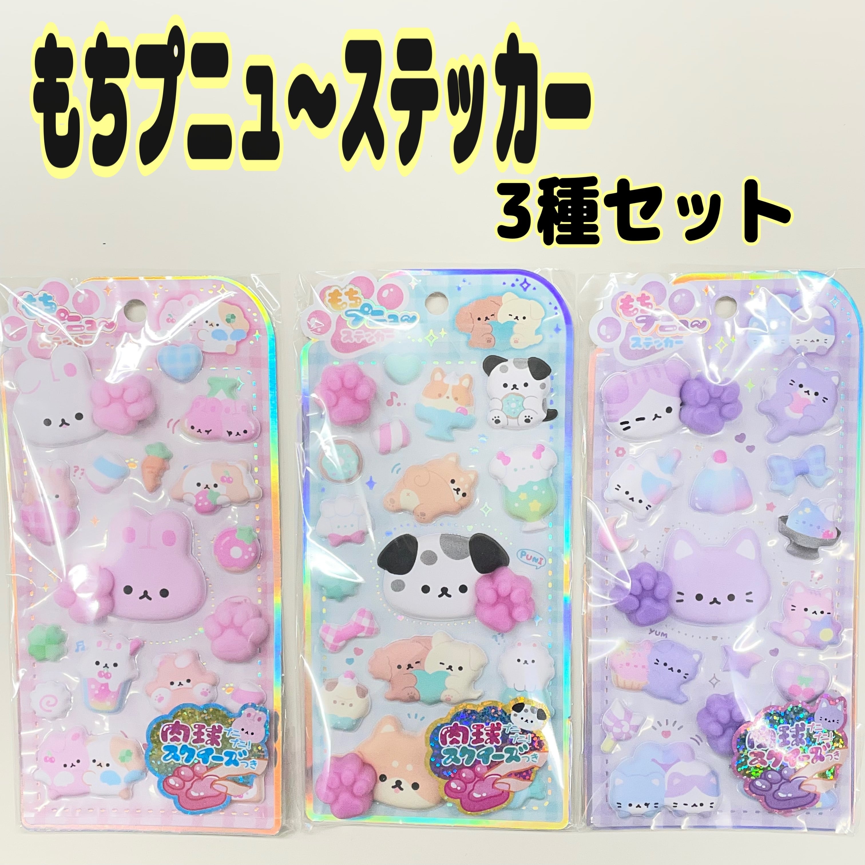 もちプニュ〜ステッカー 肉球スクイーズ付き 3種セット